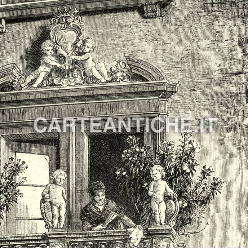 Riproduzione della veduta antica del Trentino: Palazzo Sardagna a Trento.