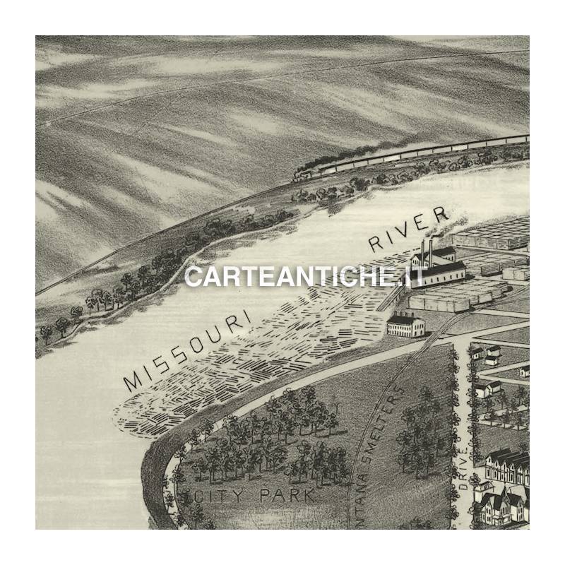 Carteantiche.it produce e vende riproduzioni di vedute antiche degli USA. Riproduzione di una veduta antica del Great Falls, Montana. Amer 1891.